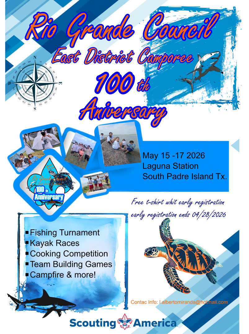 The Rio Grande Council invites you to participate in the East District 2026 Camporee, which will take place May 15-17, 2026.